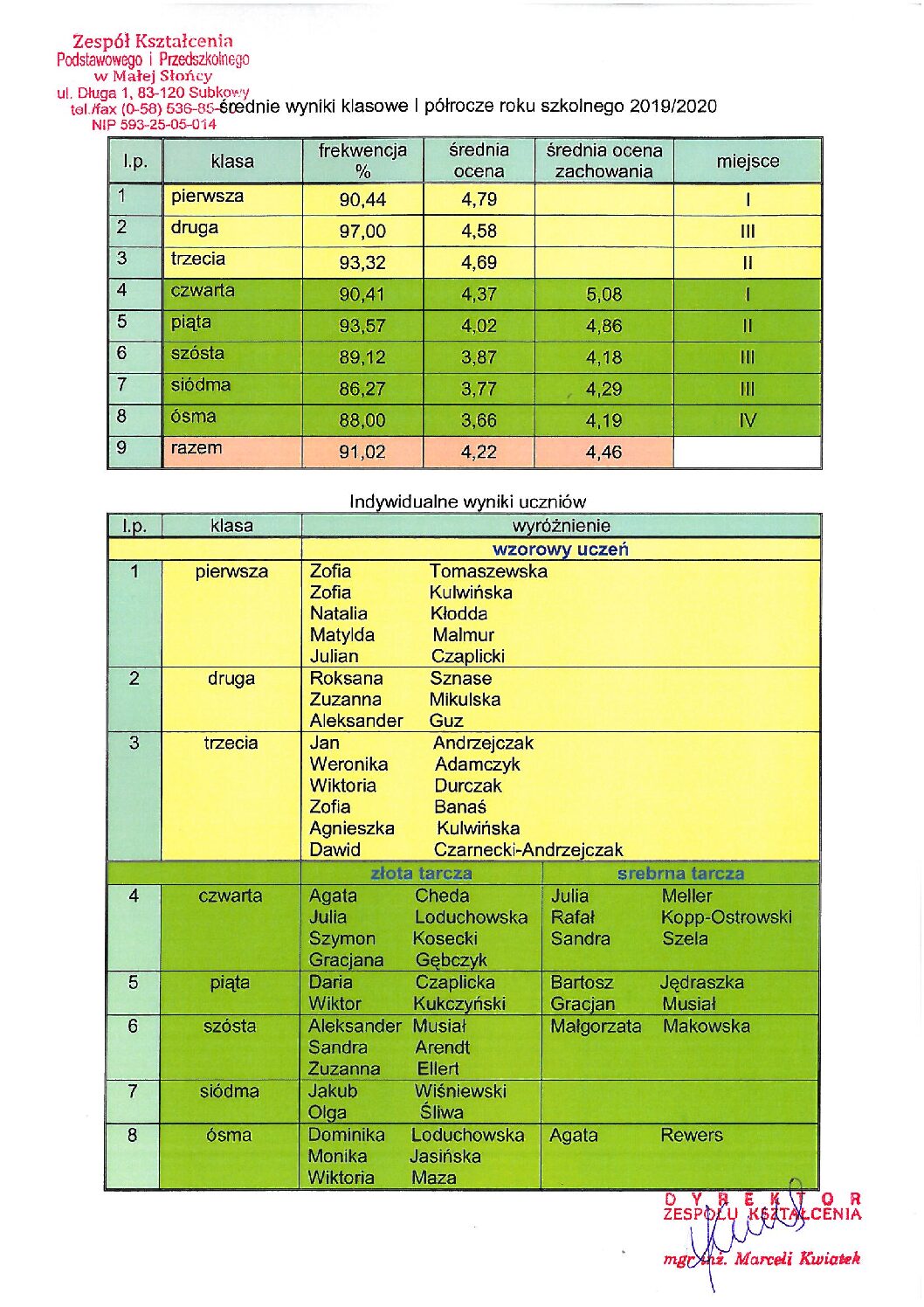 Aleksander Musiał, uczeń klasy 7 zdobył wyróżnienie w Powiatowym Konkursie dla klas 7 i 8 pt: „Najpiękniejsze Wiosenne Dyktando”, zorganizowanym przez Collegium Marianum Liceum Katolickie im. Jana Pawła II w Pelplinie. Celem konkursu na Najpiękniejsze Wiosenne Dyktando było uwrażliwienie młodzieży na poprawność ortograficzną i interpunkcyjną oraz