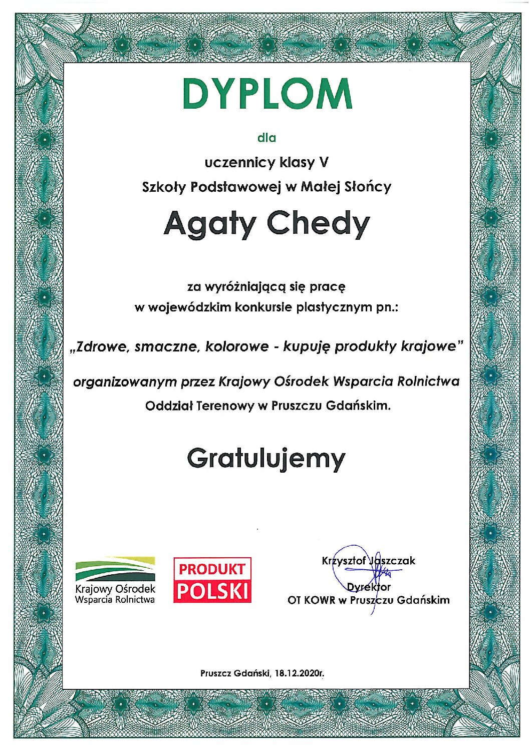 Wojewódzki konkurs plastyczny „Zdrowe, smaczne, kolorowe – kupuję produkty krajowe” organizowany przez Krajowy Ośrodek Wsparcia Rolnictwa OT w Pruszczu Gdańskim. Celem konkursu było budowanie świadomości zakupowej wśród dzieci, a także kształtowanie patriotyzmu konsumenckiego od najmłodszych lat. Komisja Konkursowa nie miała łatwego zadania, ponieważ zgłoszono