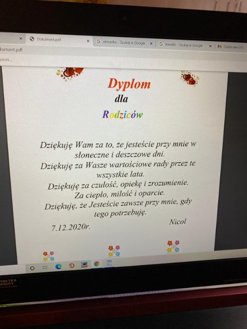 W ramach zajęć komputerowych zrobiliśmy dyplomy dla naszych rodziców